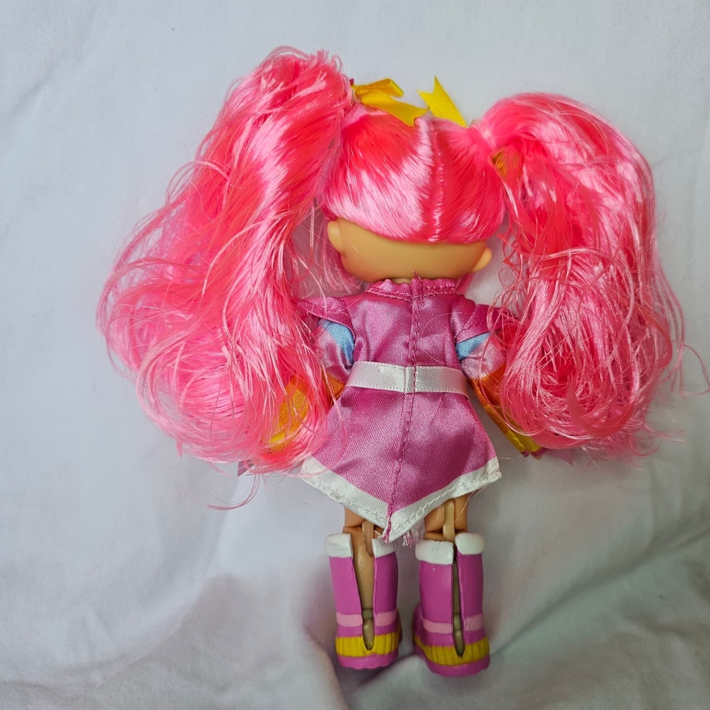 Here's all the accessories Pinkie came with. No fabric accessories, boo, but I'm happy with what I got. She's got a dark pink comb, pink and yellow headband, butterfly purse, and the same lunchbox as my RB.